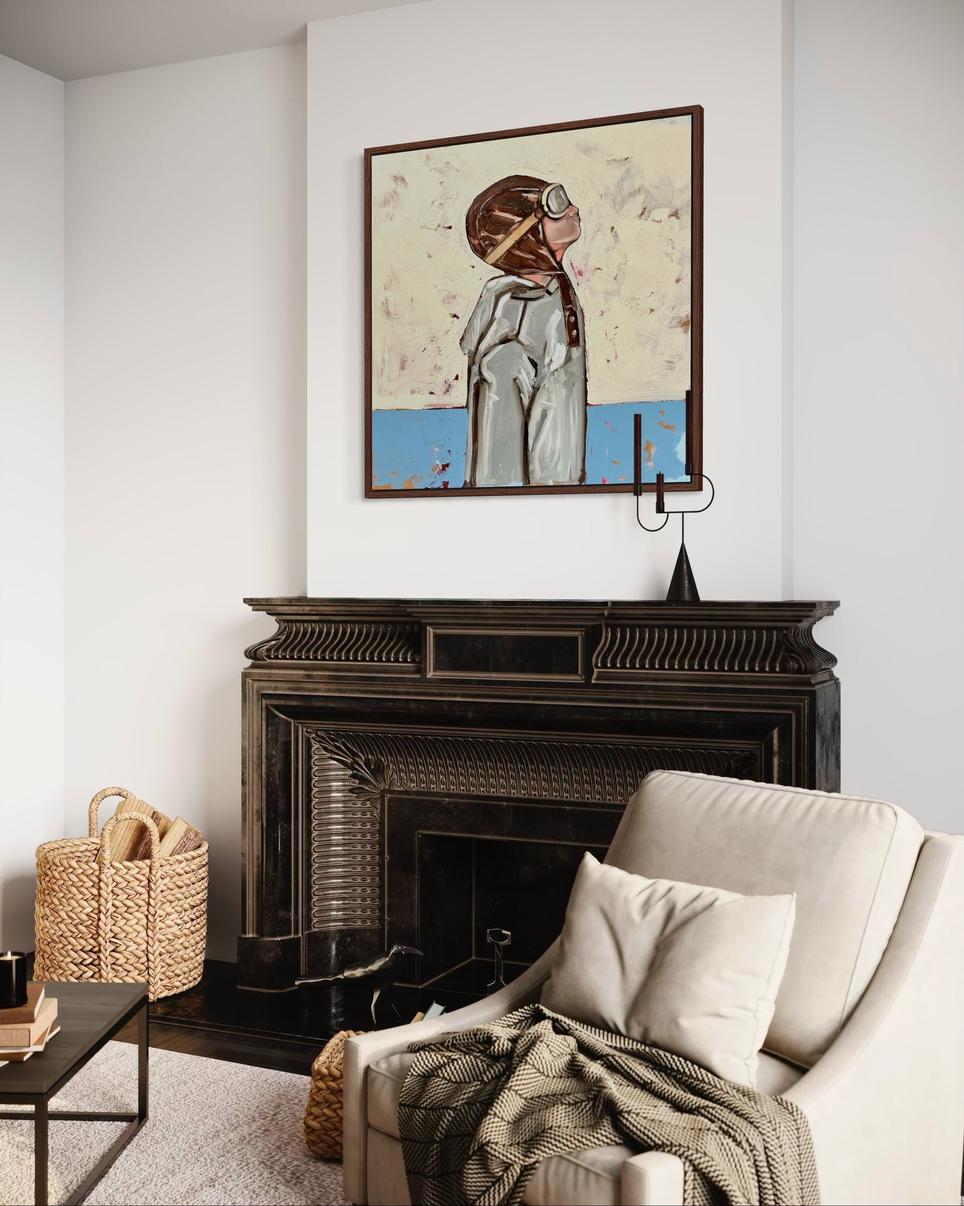 Il sogno comincia guardando in alto. Sky Dreamer ritrae un bambino vestito da aviatore, lo sguardo rivolto verso il cielo come chi custodisce un desiderio più grande di sé. La posa fiera e la calma dell’istante evocano coraggio, immaginazione e quella fiducia incrollabile tipica dell’infanzia: tutto è possibile, basta alzare gli occhi.