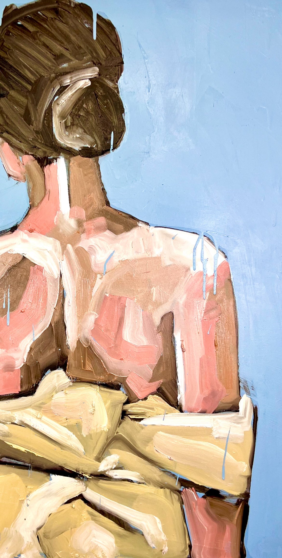 Esposta alla mostra personale “Missing Girl”, l’opera riflette il tema della presenza negata e del corpo come spazio interiore, luogo di identità e assenza.Ogni pennellata, corposa e materica, restituisce una sensazione di calma sospensione, come se la figura stesse per dissolversi nell’azzurro che la circonda.